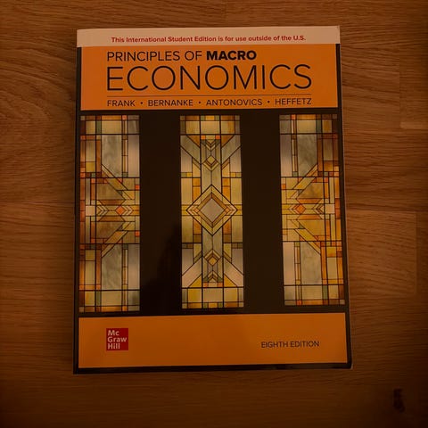 McGraw-Hill Principles of Macroeconomics lærebog i økonomi og handel. Bogen gennemgår grundlæggende makroøkonomiske teorier og begreber, herunder nationalindkomst, inflation, arbejdsløshed og økonomisk politik. Velegnet som pensum eller supplement til studier inden for økonomi, handel og beslægtede uddannelser. Udgave: Eighth Edition. Forfattere: Frank, Bernanke, Antonovics, Heffetz.