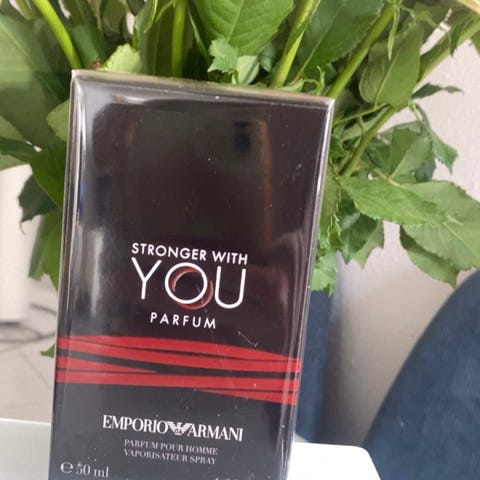 Emporio Armani Stronger With You Intensely parfume. 5 ml Flakon i glas med sprayfunktion. Duften er en eau de parfum-variant. Medfølgende mindre prøve-/rejsestørrelse med sort låg ses på billederne. Velegnet som herreduft.