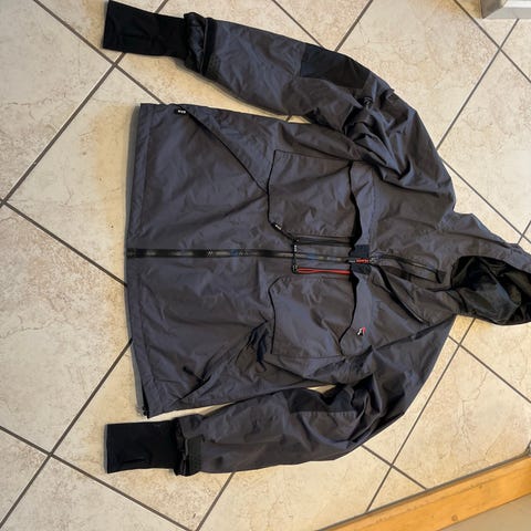 Lækker IMAX fiskejakke, str. S. Jakken har lynlåslommer foran, logoer på bryst, ærme og ryg samt en hætte. Er vind- og vandtæt, holder godt på varmen. Perfekt til havfiskeri.