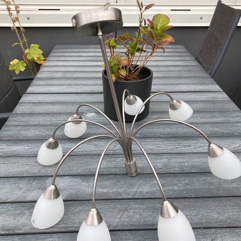 Enkelt design lampe der giver et rigtig godt lys og er i fin stand. Til ledning med tænd og sluk knap