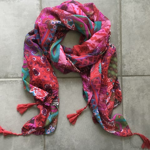 Multifarvet stort lækkert blødt tørklæde med multifarvet mønster samt kvaster