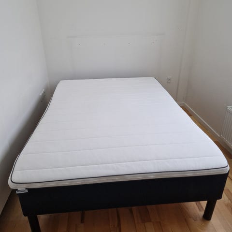 (Hvis man ønsker det, kan topmadras medfølge, den har dog lidt brugsspor, det er den der er rullet sammen i enden af sengen - top madrassen er af god kvalitet!)