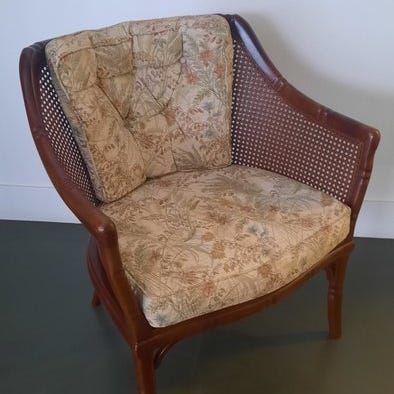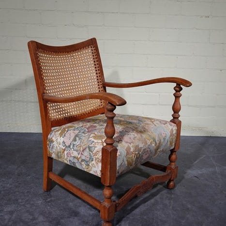 Den lænestol kræver restaureringsindgreb, nogle fletninger er beskadigede (bemærk armlæn og ryglæn, se billeder).