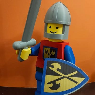 Jeg sælger fra min samling en 3D-printet og manuelt efterbehandlet statue af de klassiske LEGO Castle-legetøj, gengivet i PLA-plast, cirka 35 cm høj.