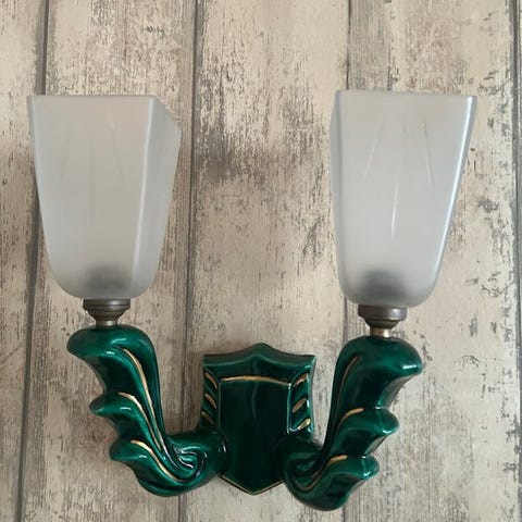 Fransk Art Deco væglampe fra C.R.S France med opaliseret presset glas skærm og patineret bronze-fod, højde 24 cm, skærmdiameter 24 cm, bredde 19 cm, dybde 15 cm, i god stand med mindre aldersrelaterede tegn, bajonetfatning, sælges uden pærer. Klik på den blå "gå til varen" knap, for at købe eller byde på denne vare. Den samlede pris vil blive vist inden du afgiver dit bud.