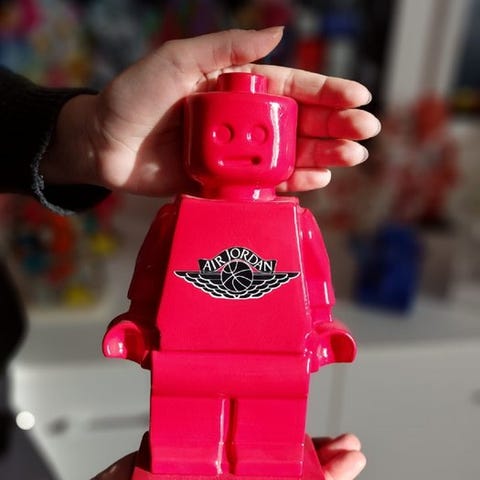 “Jeg har været forelsket i de berømte klodser siden jeg var lille, og i dag indser jeg, hvor udødelige de er. Deres skønhed er også, at de formår at gøre de andre legetøj fra 80’erne udødelige. Det er intentionen med mit arbejde. Det er den motivation, der har fået mig til at skabe mine “Alter Ego” med legetøjet fra 80’erne. Jeg ville ønske, at alle kunne lave et spring tilbage i tiden og se vores gamle legetøj på en anden måde, næsten udødeligt. Ud fra dette udgangspunkt har jeg også videreført nye eksperimenter med nye tilføjelser.”