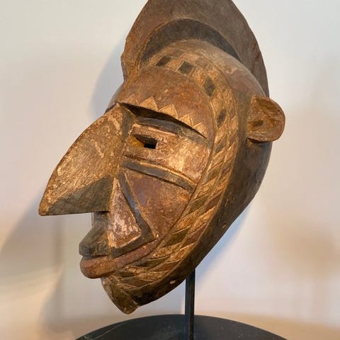N'Golo maske fra Marka-Soninké, Mali, træ, 37 cm høj, slutningen af det 20. århundrede, i god stand, provenance: privat samling. Klik på den blå "gå til varen" knap, for at købe eller byde på denne vare. Den samlede pris vil blive vist inden du afgiver dit bud.