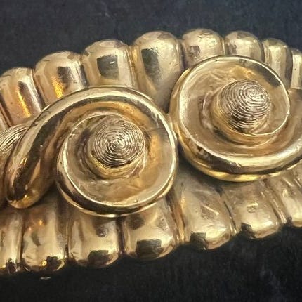 Christian Dior arkitektonisk demi-parure, unisex og guldbelagt metal, samlet vægt 78,80 g, signeret Christian Dior og Made in Germany, produceret i 1980'erne med chic arkitektonisk design. Klik på den blå "gå til varen" knap, for at købe eller byde på denne vare. Den samlede pris vil blive vist inden du afgiver dit bud.