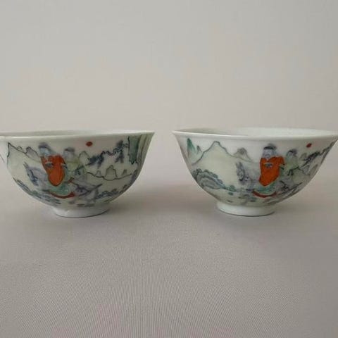 To sæt kinesiske blå- og hvide tekopper fra det sene Qing-dynasti med tilhøre...
