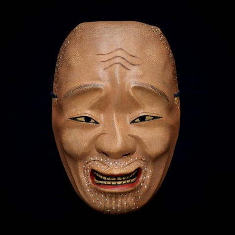 Farven og udtrykket er meget realistiske, og dette er en meget sjælden Tengu-maske.