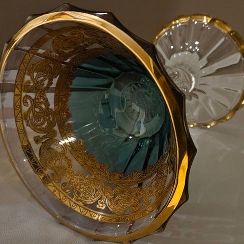 Billederne beskriver dens eksklusivitet perfekt; ud fra billederne mere end ord kan man forstå, hvilken skønhed der kunne omgive jeres bord og jeres aften, for ikke at nævne dens imponerende pragt og vægt.