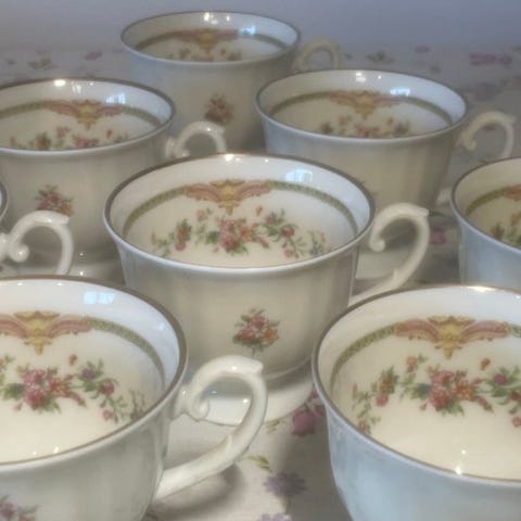 • Sammensætning: Partiet indeholder 12 tallerkener og 12 kopper