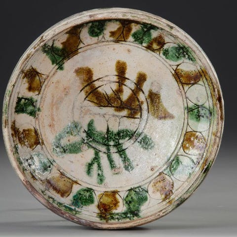 Overfladen er rigt dekoreret med indviklede arabeske kartuser indeholdende flydende arabisk kalligrafi—formentlig poetiske vers eller velsignelser—indvævet med sarte blomster- og geometriske motiver. Subtile sølvindlæg (originale og intakte) fremhæver de gravede linjer og skaber en markant kontrast til den varme, alderspatinerede messings patina.