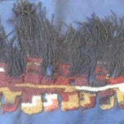 Tekstilfrise med 11 figurer, fragment af kant i en kappe eller frakke, Nazca-kulturen, Peru, 12 cm høj og 58 cm bred, i god stand, uden stand. Klik på den blå "gå til varen" knap, for at købe eller byde på denne vare. Den samlede pris vil blive vist inden du afgiver dit bud.