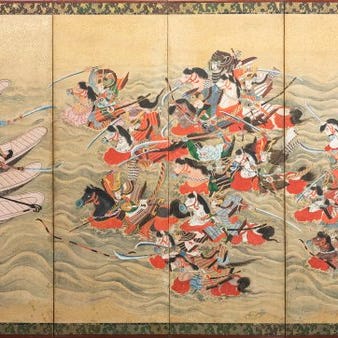 To-panel byobu-skærm fra Japan fra Showa-perioden med fyrretræer, peoner og gyldne fasaner i god stand med mindre tegn på alder; dimensioner ca. H 180,5 cm × B 176 cm × D 2 cm. Klik på den blå "gå til varen" knap, for at købe eller byde på denne vare. Den samlede pris vil blive vist inden du afgiver dit bud.