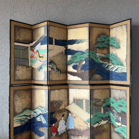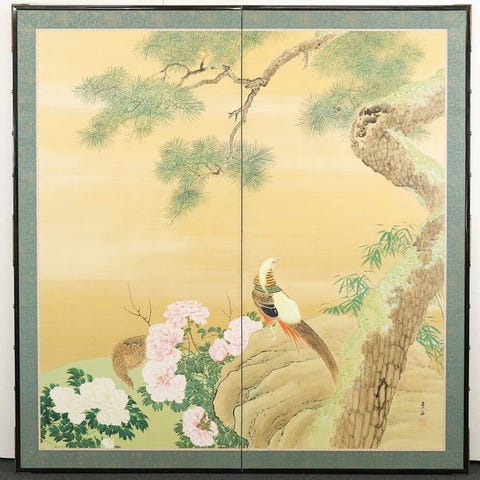 Byōbu foldeskærm - Blækmaleri af træer og fugle af Nakamura Ryuichi (中村竜一) (U...