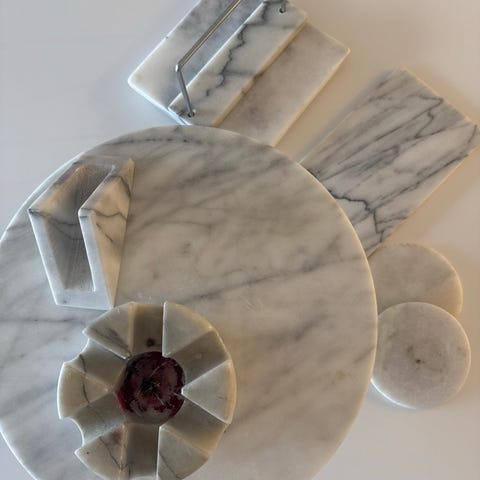 Syv stykker realistiske frugter udskåret i Carrara-marmos-pulver, lavet i Italien, i god brugt stand med små aldersmærker og pletter; dimensioner og vægt vises på fotos. Klik på den blå "gå til varen" knap, for at købe eller byde på denne vare. Den samlede pris vil blive vist inden du afgiver dit bud.
