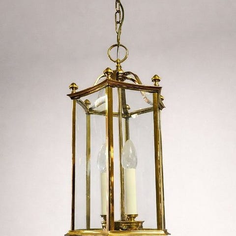Lampe - Messing, Glas - Messing hængelampe fra 1930’erne med fem glasvinduer