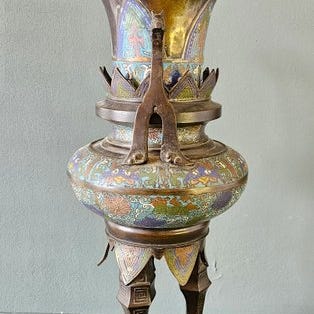 Japansk firegren Vajra i bronze, forgyldt bronze, sen Edo-periode (c. 1800–1850), højde 14,5 cm, vægt 207 g, oprindelse privat samling, attribution Original, i god stand med enkelte alderdomsrelaterede brugsspor. Klik på den blå "gå til varen" knap, for at købe eller byde på denne vare. Den samlede pris vil blive vist inden du afgiver dit bud.