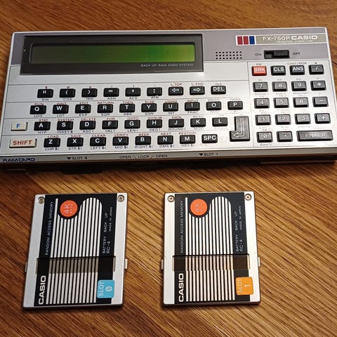 Casio FX-850P: en videnskabelig regnemaskine introduceret i 1987 og solgt indtil 1999. Den tillader blandt andet programmering i BASIC. Detaljeret info.: https://en.wikipedia.org/wiki/Casio_FX-850P