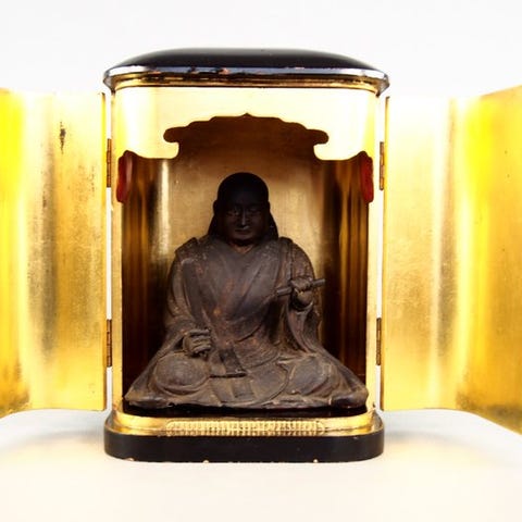 Denne statue forestiller Shindara Taishō 真達羅大将, en af de Tolv Himmelske Generaler (Jūni Shinshō), de magtfulde guddommelige vogtere, der tjener og beskytter Yakushi Nyorai ( Medicin Boddhisattva).