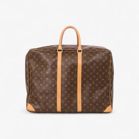 LOUIS VUITTON Weekender "SIRIUS 45", coll.: 2001. Monogram canvas-serie med læderdetaljer, guldfarvede beslag, dobbelt hank og lynlås hele vejen rundt. Interiøret med ét rum og spændestropper på den ene side. Slidmærker ses. 45 x 15 x 31,5 cm. Taskens kvalitet er høj, materialerne er holdbare.