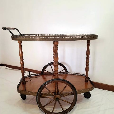 Elegant servicevogn fra 1950'erne med to niveauer og et rum til flasker