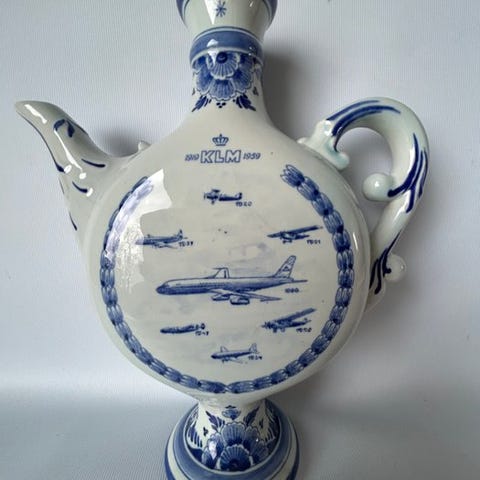 KLM atten porcelænsting designet af Marcel Wanders, i ubrugt stand, dateret 2000–2010, fremstillet i Nederlandene, hvid og blå, med tallerkener på 19 cm i diameter og genstande 4 cm i højden. Klik på den blå "gå til varen" knap, for at købe eller byde på denne vare. Den samlede pris vil blive vist inden du afgiver dit bud.
