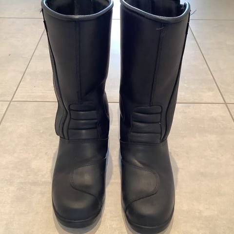 Alpinestars CR-X Drystar motorcykelstøvler i størrelse EUR 42 (US 9). Støvlerne er i sort med røde detaljer og har mellemhøjt skaft med snørebånd og velcrolukning. Drystar-membranen er designet til at være vandtæt og åndbar. Ydersålen har kraftigt mønster for bedre greb. Overdelen er i syntetiske materialer og tekstil med forstærkninger omkring hæl og ankel. Velegnet som motorcykel- eller scooterstøvler til kørsel i skiftende vejrforhold.