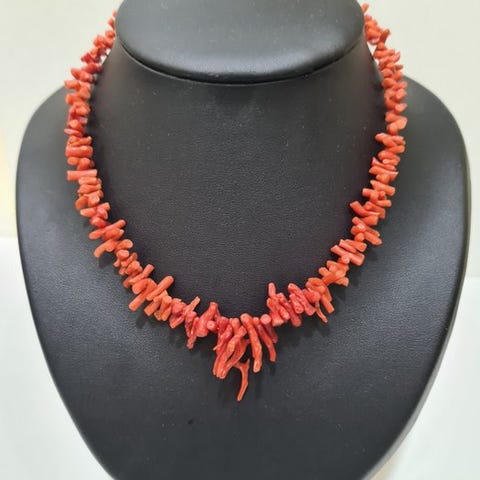 Donna halskæde i naturligt rosa koraller, håndflettede i torchon-mønster, ikke mærke, vægt 300 g, ca. 40 cm lang, i fremragende stand. Klik på den blå "gå til varen" knap, for at købe eller byde på denne vare. Den samlede pris vil blive vist inden du afgiver dit bud.