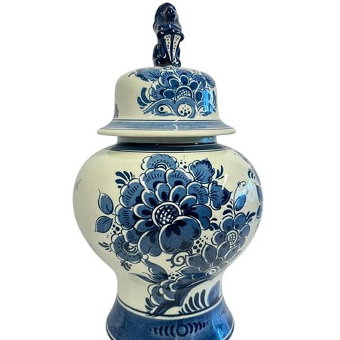 Smukt samleobjekt inden for traditionen Delfts blå og hollandsk keramik, i tråd med bl.a. Royal Delft / De Porceleyne Fles og andet af høj kvalitet håndmalet Makkumer keramik.