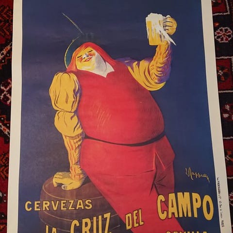 En anden af de store plakater, som CAC, vennerklubben for plakatkunstnere, udgav i 1980'erne og 1990'erne. Plakaten er meget sjælden og er lavet i flere farvetoner med italiensk papir af god vægt. Den måler 98x68 cm. En af de få plakater, som Cappiello lavede for spanske virksomheder. I ret god stand.