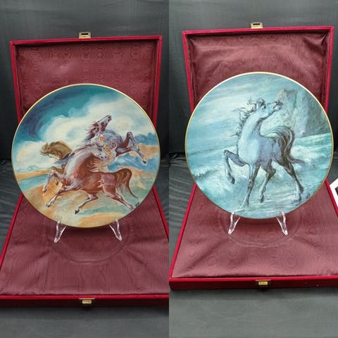 En prestigefyldt par af store polykromt glasurerede keramikskulpturer, produceret af den velkendte fabrik "Ceramiche Italia" i Albisola Capo, Italien. Disse værker indkapsler højden af Liguriansk figurativt design fra perioden efter Anden Verdenskrig.