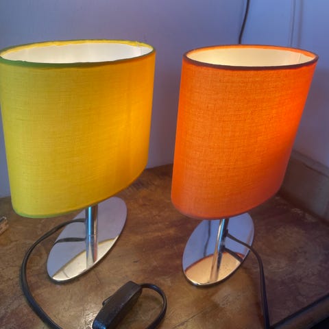 Lampens har to lyspunkter og spreder et varmt, diffust lys. Undersiden er mærket Honsel.