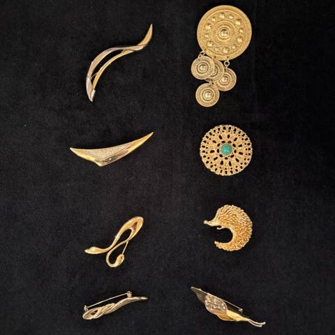 En samling af 50 originale franske Art Nouveau / Art Deco-gulddekorerede ornamenter fra omkring 1920–1930, aldrig brugte og i fremragende stand, med original guldfinish på let metal. Klik på den blå "gå til varen" knap, for at købe eller byde på denne vare. Den samlede pris vil blive vist inden du afgiver dit bud.