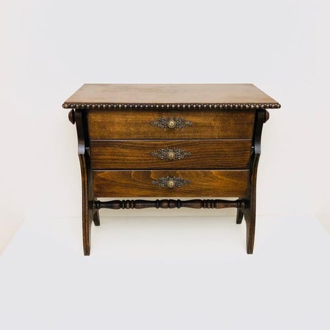 Der tilbydes et elegant lille sidebord. Det drejer sig om et originalt gammeldags eksemplar. Oprindelig fra Frankrig. Fra 70'erne.