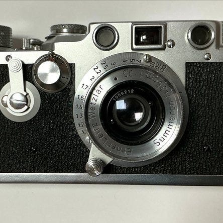 Tilbudt er denne Robot Royal 36 (fra Berning/Robot) med en 45 mm lens. Det er et yderst nøjagtigt tysk 35 mm kamera, kendt for sin urværksmotor, unikke roterende lukker og muligheden for hurtigt gentagne optagelser (op til 6 billeder i sekundet) som standard. Kameraet er berømt for sin robuste støbt kabinet, præcisionsoptik og afstandsmåler, og var et højkvalitets, unikt alternativ til Leica. Det er populært blandt seriøse entusiaster på grund af sin høje kvalitet, hurtige optagehastighed og holdbare mekanik. Slukker: roterende Lukkertider: B, 1/2 - 1/500. Alle lukkertider virker. Objektiv: Schneider Kreuznach Xenar 45 mm f/2.8. Objektivet er fri for tåge, svamp og adskillelse. Et tiltrækkende objekt, der skiller sig ud ved sin fremtræden, sjældenhed og samlerpotentiale. Ideelt som tilføjelse til en eksisterende samling eller som et unikt