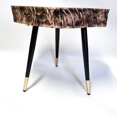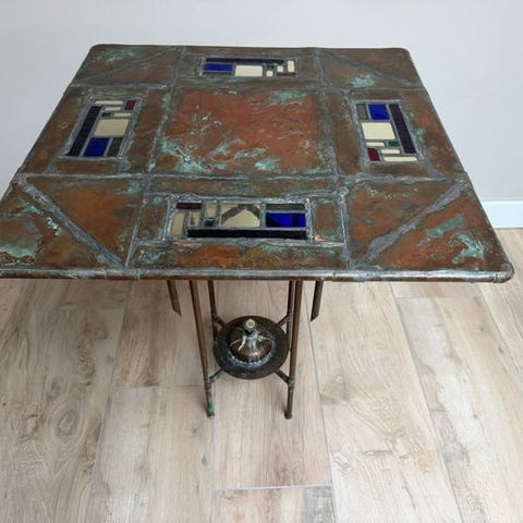 antik fin sofabord, dekoreret af en kunstner i MacKenzie-Childs-stil.