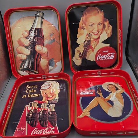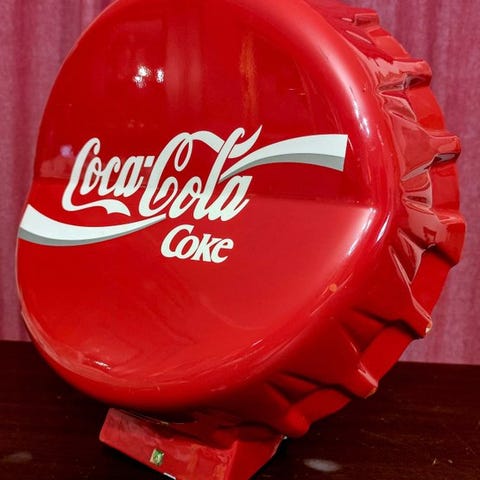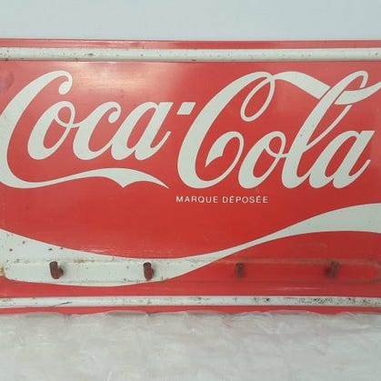 Originalt vintage reklameskilt med en Coca-Cola-drik fra 1950'erne i vinduet. Måler cirka 15 x 15 cm. Sjælden og svært at finde samlerobjekt. Følg os på vores sociale mediekanaler: @alexdesignmilano. Sjælden og svært at finde dekorativ genstand.
