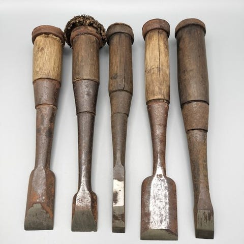 Japansk træsnitknivsæt – (brugt, jernblade, træhåndtag)
