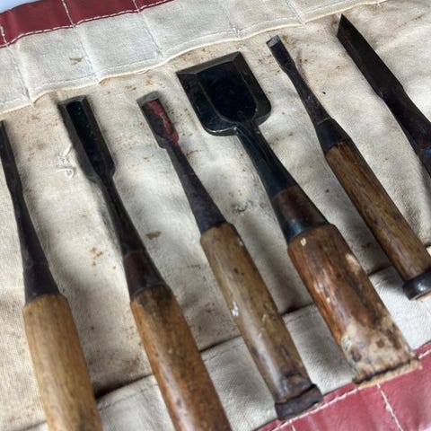 Dette er et komplet sæt af 40 traditionelle japanske mejsler, der bruges til træsnit og trykning. Fremstillet med jernblade og originale træhåndtag, sætter afspejler den præcision og holdbarhed, som er typiske for japansk håndværk.