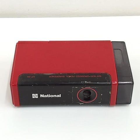 Et sjældent og samlerobjekt elektrisk blyantspidser fra Showa-æraen (ca. 1970’erne), fremstillet af National (Panasonic Electric Works, Japan).