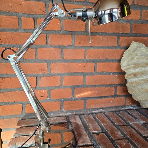 Italiensk produceret justerbar skrivebordslampe i stål fra 1950’erne, i god brugt stand med let patina, målene 60 x 40 x 16 cm, i funktion. Klik på den blå "gå til varen" knap, for at købe eller byde på denne vare. Den samlede pris vil blive vist inden du afgiver dit bud.