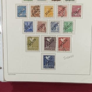 Oprindelse Berlin, 1948, fire registrerede breve med sort tryk fra Berlin til Bensberg, Michel 1/20, afstemplet og i omløb, uden certifikat; kuverter lavet af bukkede kort med ankomststempel. Klik på den blå "gå til varen" knap, for at købe eller byde på denne vare. Den samlede pris vil blive vist inden du afgiver dit bud.