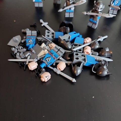Kong Arthur, den sølvridder fra Augsburg. den sorte ridder fra Augsburg, den blå ridder fra Milano,