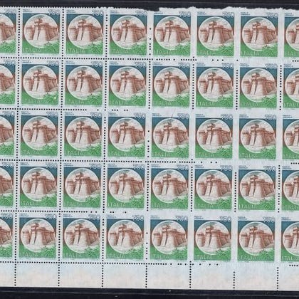 Italien 1980 - Castelli L. 1000. Blok af 6 eksemplarer med forskudt tryk og t...