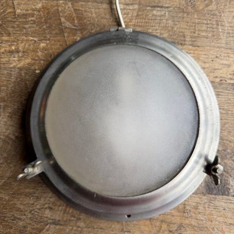Poleret skibslampe fra 1960'erne, renoveret, klar til brug, i aluminiumslegeme.