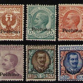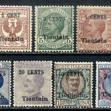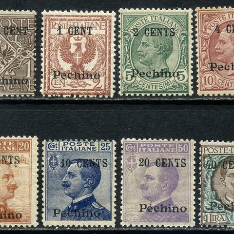 Kina - italienske postkontorer 1917 - Vittorio Emanuele II, 8 værdier trykt o...