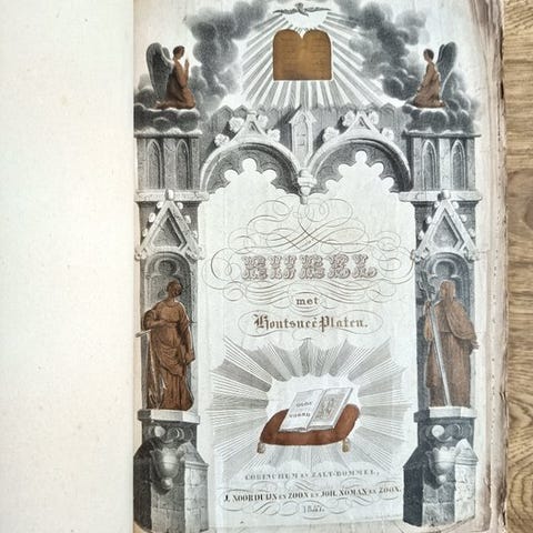 Mortier-Bijbel: Historie des Ouden en Nieuwen Testaments, af Pieter Mortier, hollandsk udgave fra 1700 i to bind sammen i en, halvlæderbind, med 214 tegninger og kort, ca. 500 sider. Klik på den blå "gå til varen" knap, for at købe eller byde på denne vare. Den samlede pris vil blive vist inden du afgiver dit bud.