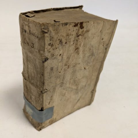 Imhof C-38; STCV 6693155. - Sjælden, udgaven af den Romerske Katekismus udgivet af Leidener universitetslærer André Levèvre (1520 - 1581) og trykt i Plantijns Offizin i 1601. Med trykkermærke på titelbladet og til sidst. - Bindebånd mangler, ryggen med en lille manglende del. Forsatsbladet løs, papir moderat gulnet og stedvis let plettet. Fra en løsnet